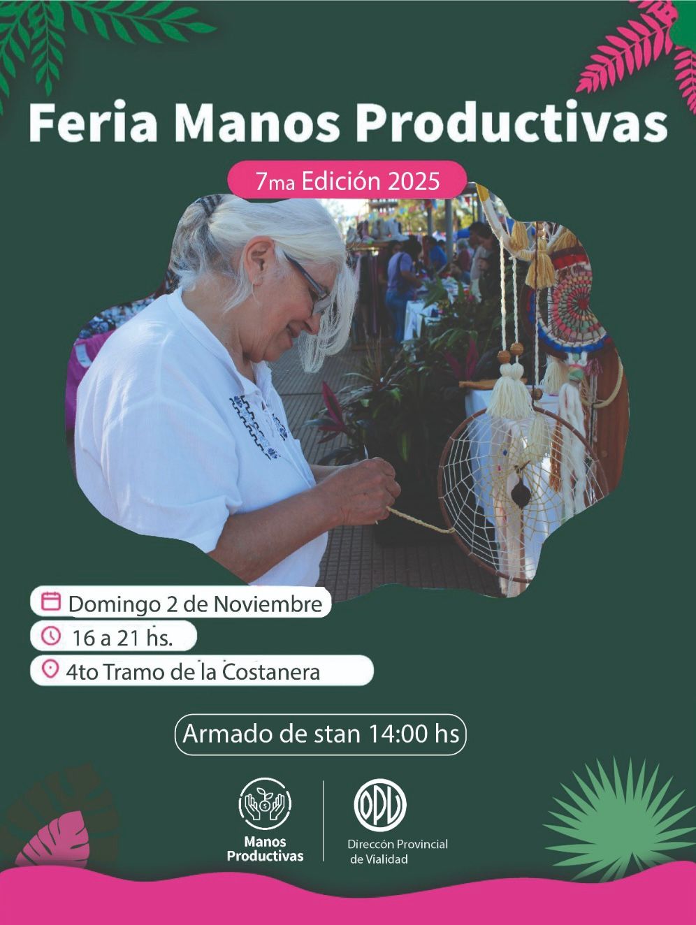 Este domingo 2 de noviembre, de 16:00 a 21:00 horas, llega la 7º edición de la feria Manos Productivas en el cuarto tramo de la Costanera. El encuentro reunirá a cerca de 500 emprendedores de distintos puntos de la provincia, quienes exhibirán sus productos, junto con otros expositores de la zona, ofreciendo una variedad de artículos y servicios. Manos Productivas Posadas trabaja con compromiso y pasión para promover el talento local y fortalecer el desarrollo de los pequeños productores, brindándoles un espacio donde sus propuestas puedan alcanzar mayor visibilidad y generar nuevas oportunidades de crecimiento.
